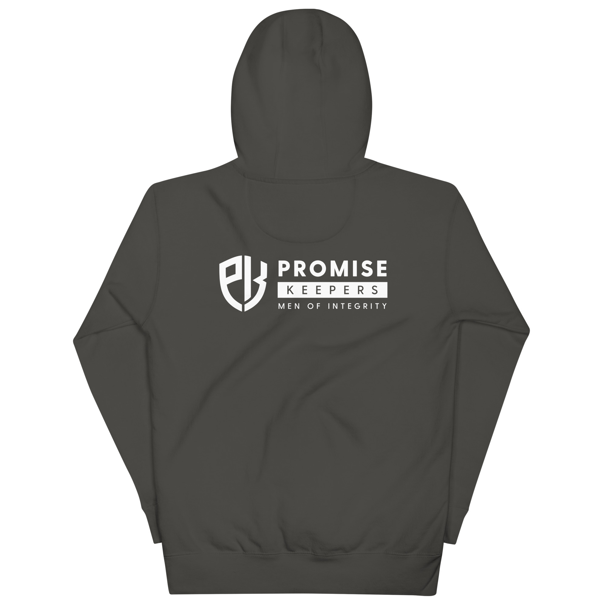 The Promise Keepers MOI (Men of Integrity) hoodie honors first responders and military men who run toward the fight instead of away from it. The bold design reminds us that true strength is rooted in integrity. The American flag is intentionally placed in reverse. Just like on a soldier’s uniform, it represents forward motion, advancing into the battle rather than retreating. This shirt is a statement of courage, brotherhood, and faith in action